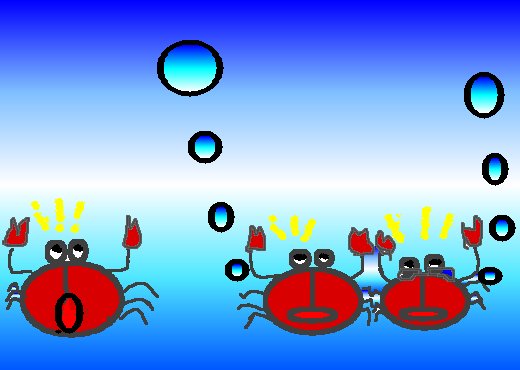 (みつけてみてね!)カニの子供が、びっくりして泣いているぞ!