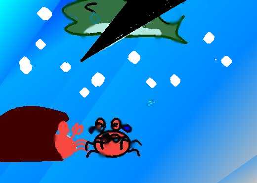 兄さんのかには、はっきりとその青いものの先が、コンパスのように黒くとがっているのも見ました。と思ううちに、魚の白い腹がぎらっと光って一ぺんひるがえり、上の方へ上ったようでしたが、それっきりもう青いものも魚の形も見えず、光の黄金のあみはゆらゆらゆれ、あわはつぶつぶ流れました。